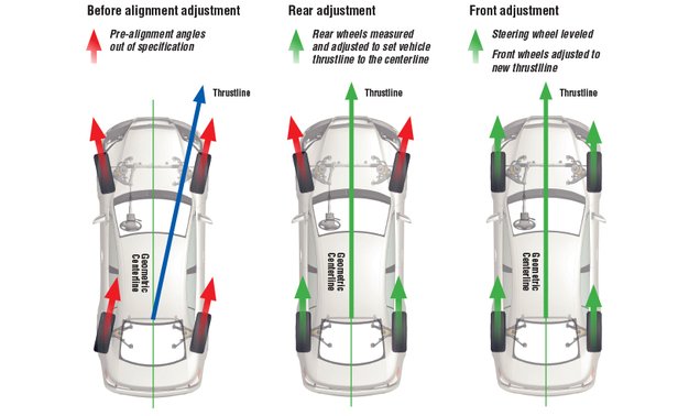 El vehículo con su dirección correctamente alineada tendrá su volante centrado y recto, pasará por el mismo arco cuando gira a la derecha o la izquierda, y mostrará control en las curvas sin roncear (mientras la velocidad y la aceleración sean razonables). Además provee mayor vida útil a las llantas, juntas homocinéticas, cremallera, rodamientos, crucetas, muñones, bujes, amortiguadores y demás del tren de rodado.